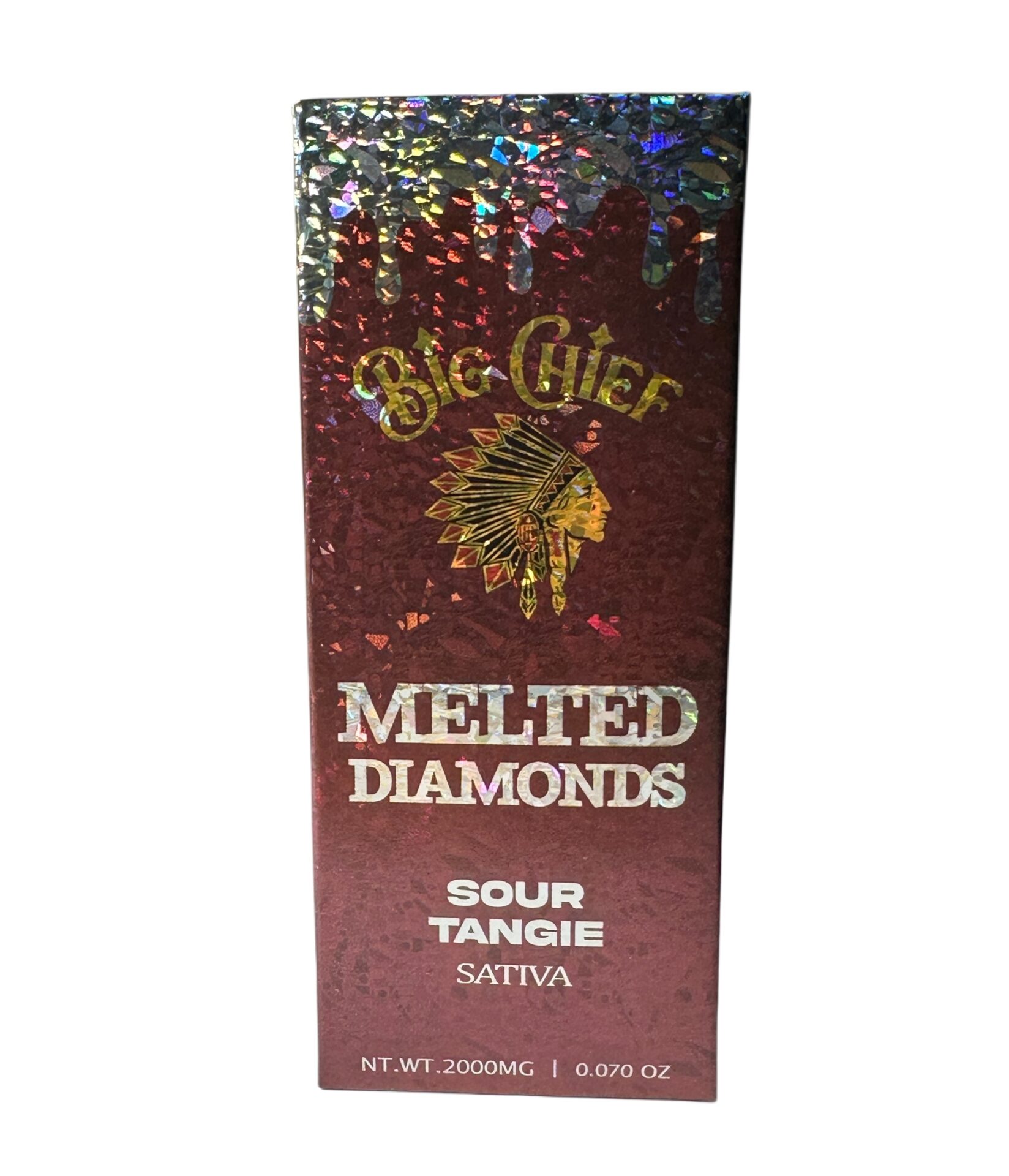 Big Chief – Melted Diamonds Disposable – Sour Tangie (2G) is a sativa-dominant powerhouse that delivers an energizing citrus rush paired with diamond-grade potency. A cross between East Coast Sour Diesel and Tangie, this strain offers an electrifying blend of sour orange zest, earthy sweetness, and euphoric clarity. Infused with melted live resin diamonds, each puff delivers full-spectrum flavor, smooth vapor, and a clean, uplifting high that keeps your mood bright and your focus sharp.