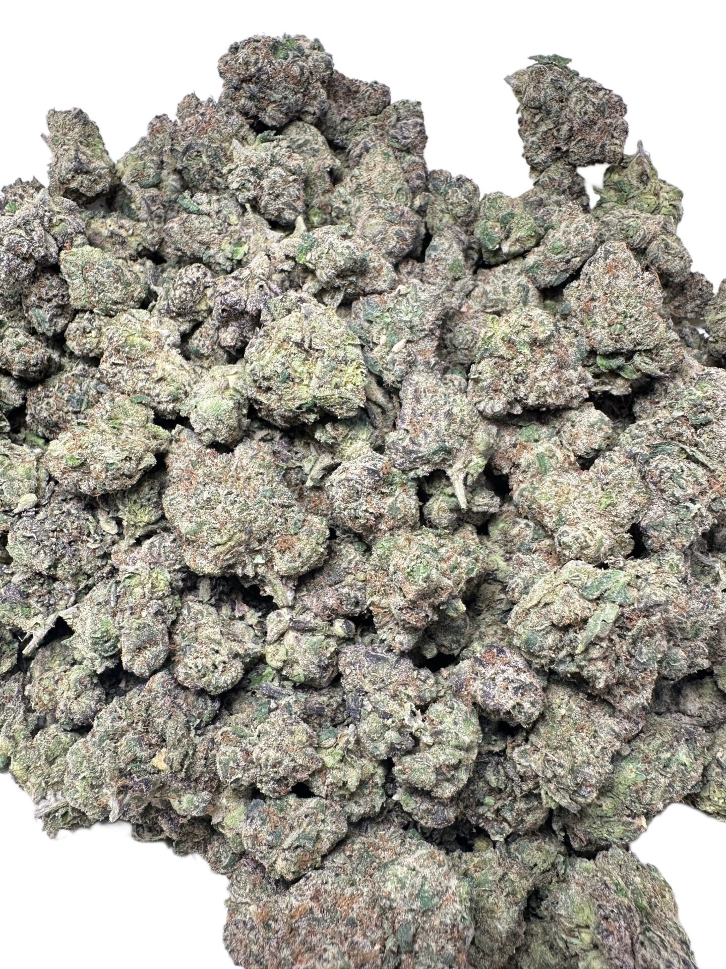 • Dense, chunky buds with deep green and purple tones