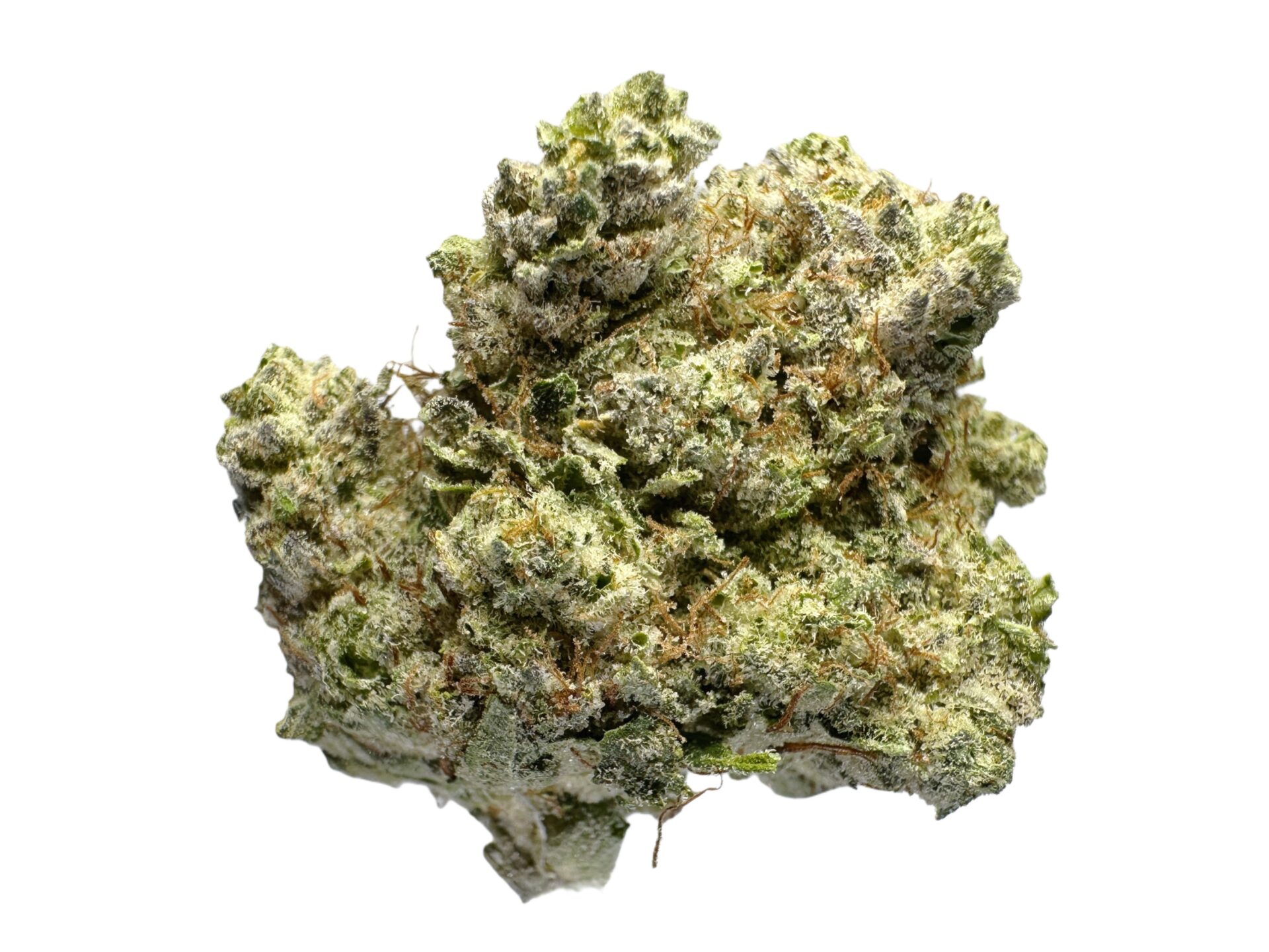 GG4 buds are chunky and resin-heavy, with a frosted coating of white trichomes that gives them a “glued” look. Deep forest greens are contrasted by amber pistils, showcasing the strain’s quality genetics.